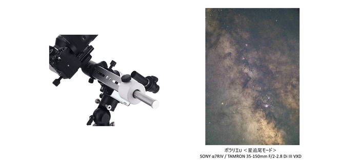 星空雲台ポラリエU(WT)と本キットを組み合わせることにより望遠レンズの搭載が可能となり、迫力ある星空写真が撮影できます。