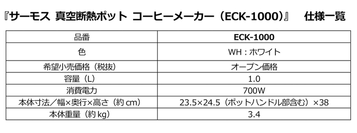 ◆サーモス 真空断熱ポット コーヒーメーカー(ECK-1000)製品特長