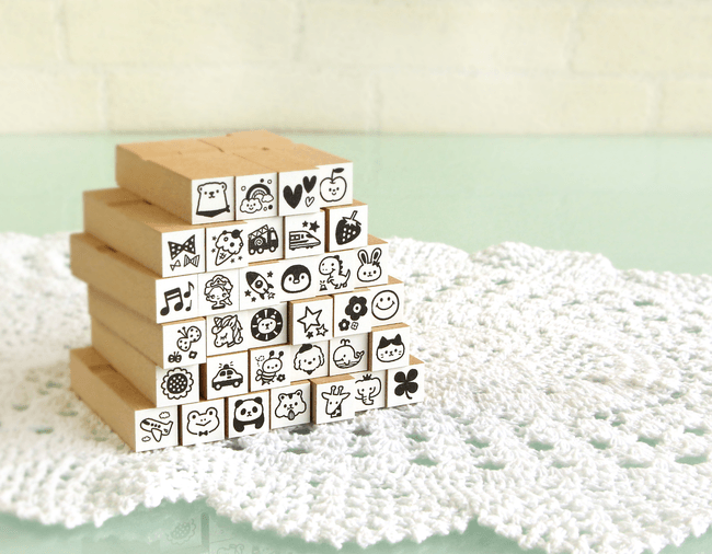 イラストスタンプとケースは、すべて当店のイラストレーターとデザイナーが作成したオリジナルです。デコシールつきのかわいい収納ケースもポイントです。
