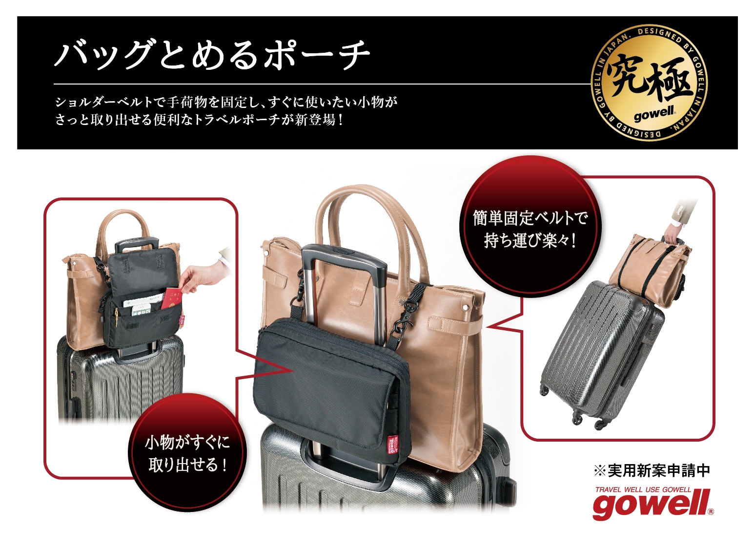 株式会社トレードワークス(本社:東京都渋谷区)は、このたびオリジナルトラベル雑貨ブランド「gowell(ゴーウェル)」より、究極トラベルギアシリーズ第一弾として『バッグとめるポーチ』を2018年4月下旬より順次販売を開始いたします。