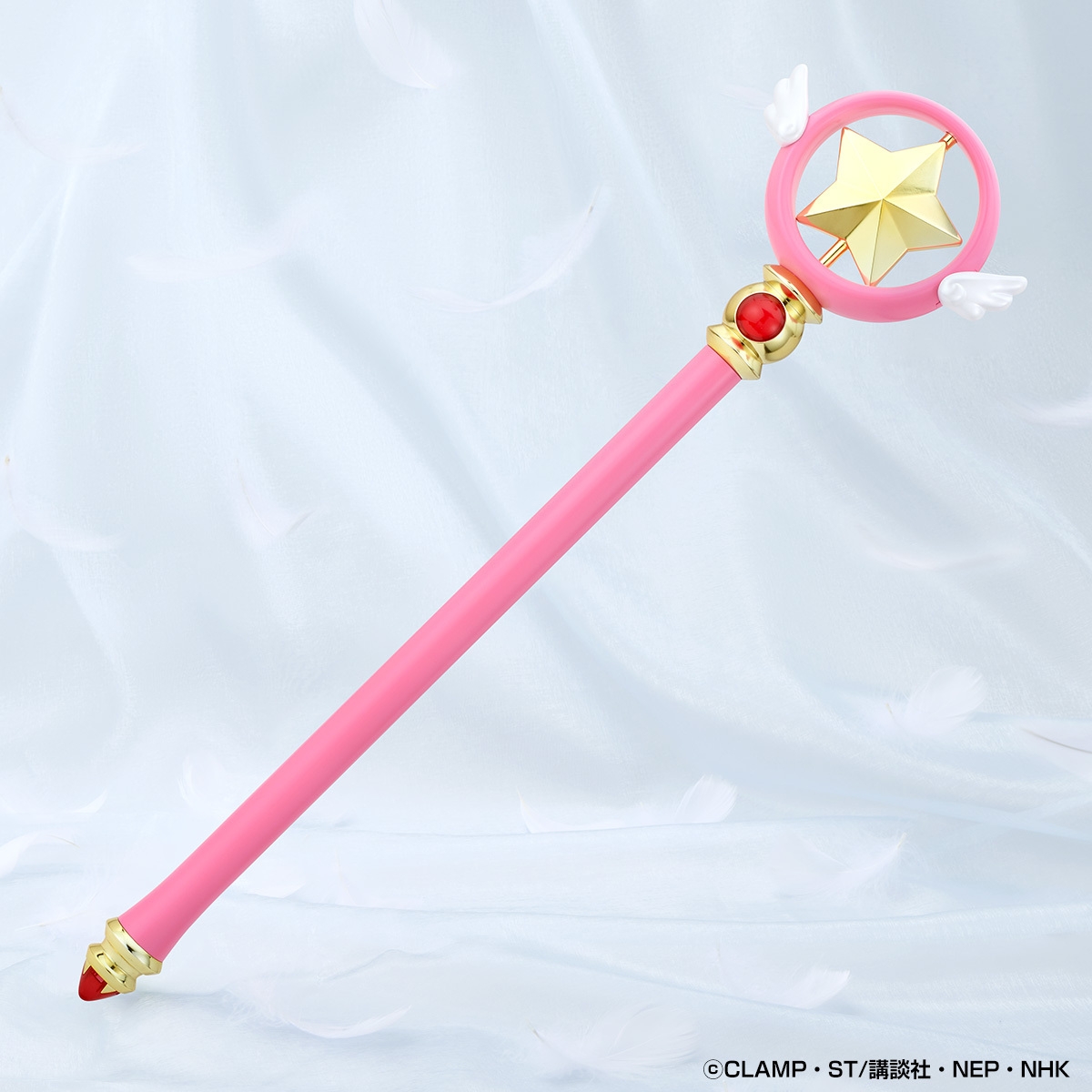 1998年に放送されたアニメ「カードキャプターさくら」より、主人公さくらちゃんが用いるアイテムである『星の杖』を、音を搭載して再現した玩具仕様で商品化いたします。