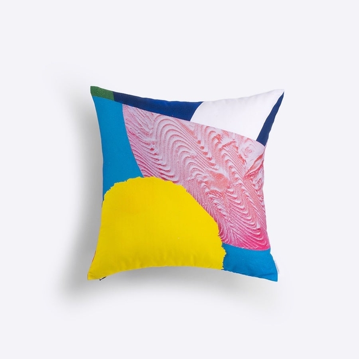 45×45cmのクッションカバー。素材には上質なオックスコットンを100%使用。日本国内で一貫生産しており、アート作品の美しさや機微な表現を最大限に引き出しつつ、肌ざわりも滑らかな高品質のクッションカバーです。
