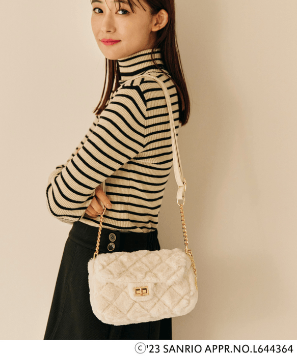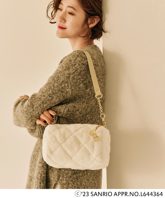 フェイクファーにキルティングを施した、コロンとした丸みのあるデザインのショルダーバッグ。