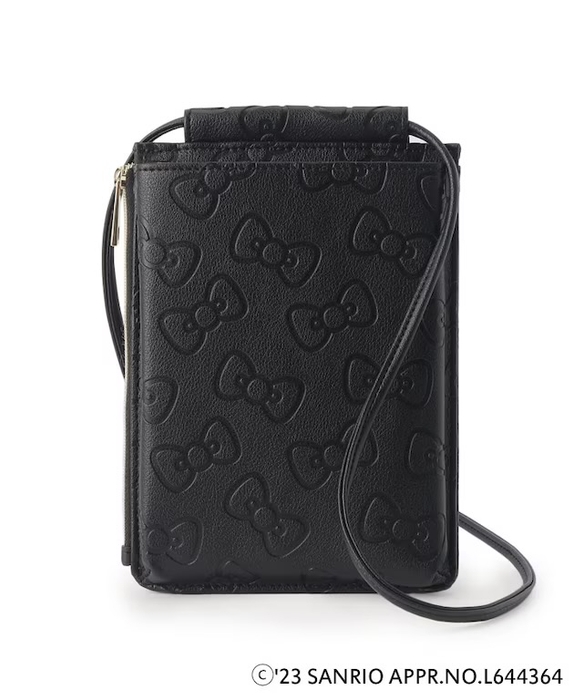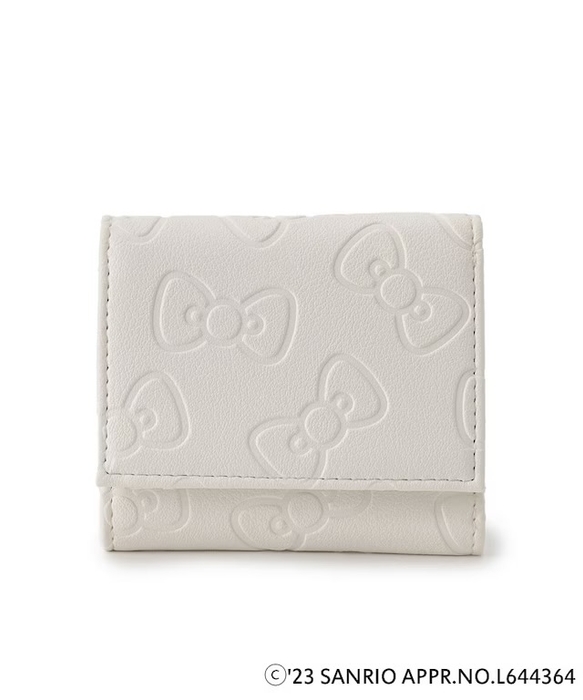 合皮素材(フェイクレザー)のアイテムには、リボンモチーフのエンボス加工が施されており、表面の立体感がアクセントになっています。