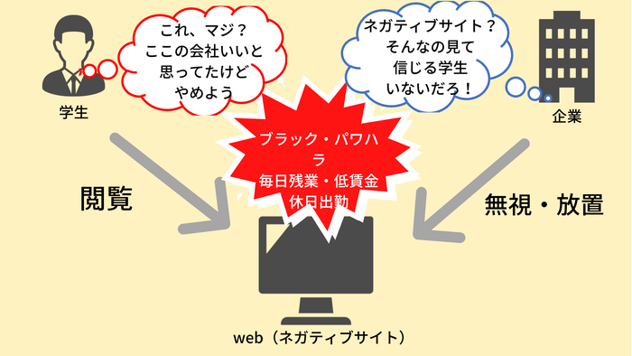 例えば、社名検索時に表示される「ブラック」「パワハラ」などのキーワード、各クチコミサイトでのネガティブな書き込み、5ちゃんねるなどの匿名掲示板での個人名を伴う誹謗中傷などが挙げられます。