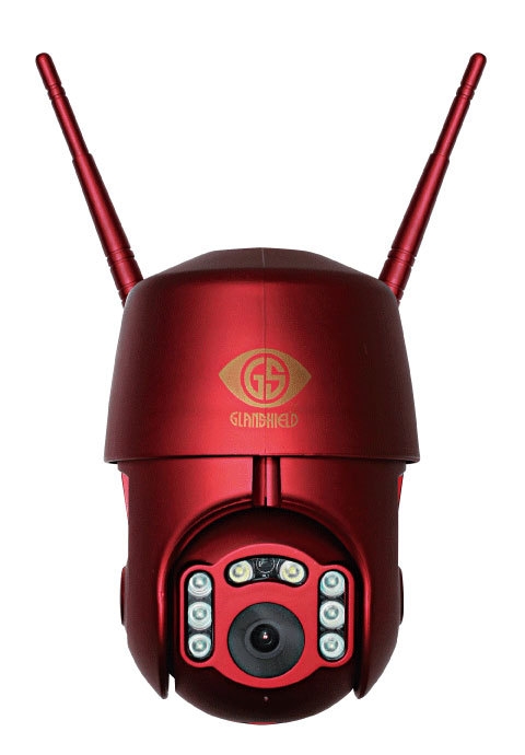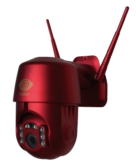 深紅のボディペイントで従来のカメラには余り見られない存在感をあえて出す事で視覚的にも威圧感を与えつつ、「追跡しながら光るカメラ」である事を打ち出し、水平355°の範囲でヘッドが目標を追尾して、設定により、LEDライトを照射し、サイレンを鳴らすなど威嚇効果を付けることが可能。