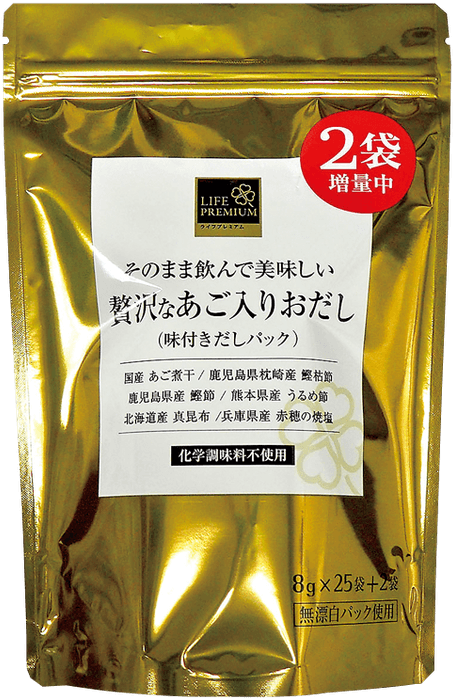 どんな料理でも大活躍! ライフプレミアム「そのまま飲んで美味しい 贅沢なあご入りおだし」増量パックを数量限定で販売中!