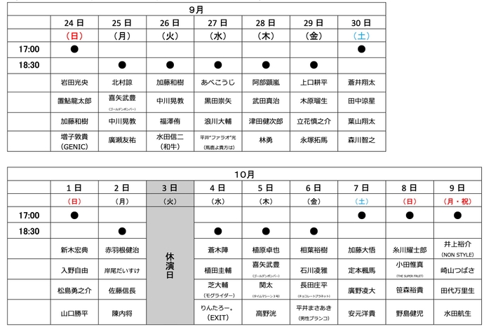 ※やむを得ない事情により出演者等が変更になる場合がございます。その場合でも払い戻し、他日への変更は致しかねます。