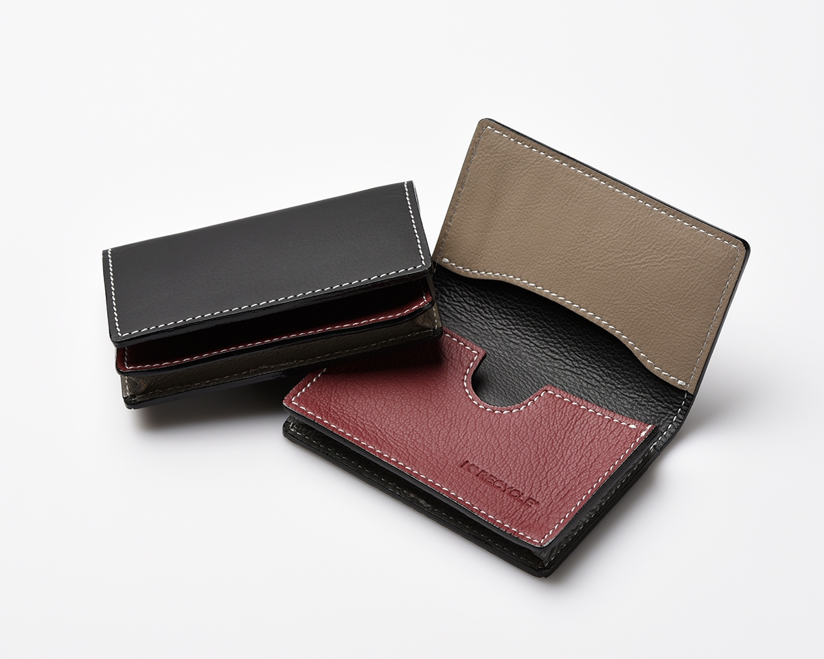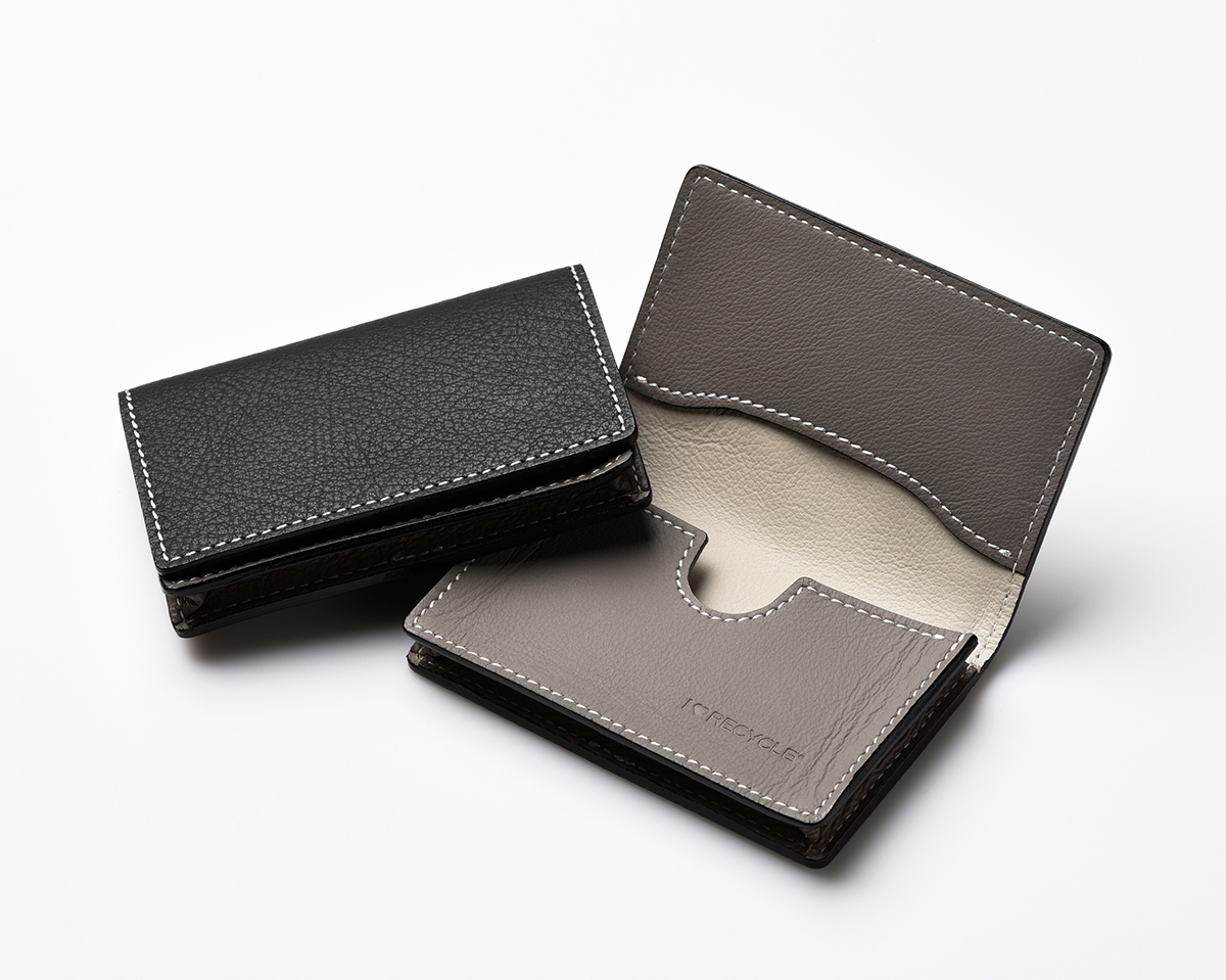また、滝川市に本社を構える株式会社レザースタジオKAZU様と自動車の革シートを利用して名刺ケースを作製しました。今後、SDGsの取り組みとして多種多様なアップサイクル商品を数十種類開発、販売を検討中です。来場者の皆様にリサイクルを身近に感じていただけるよう努めていきます。