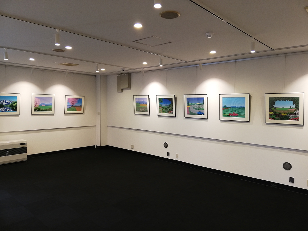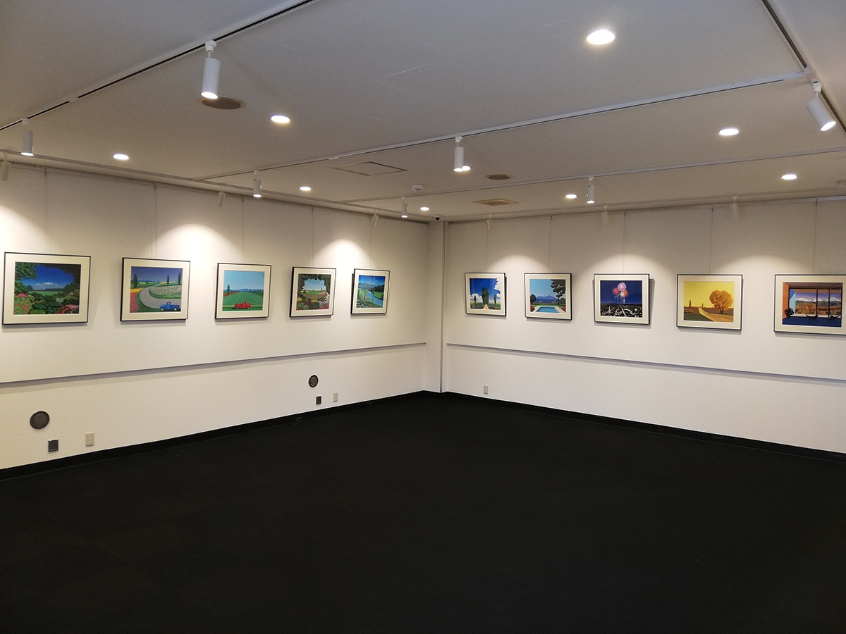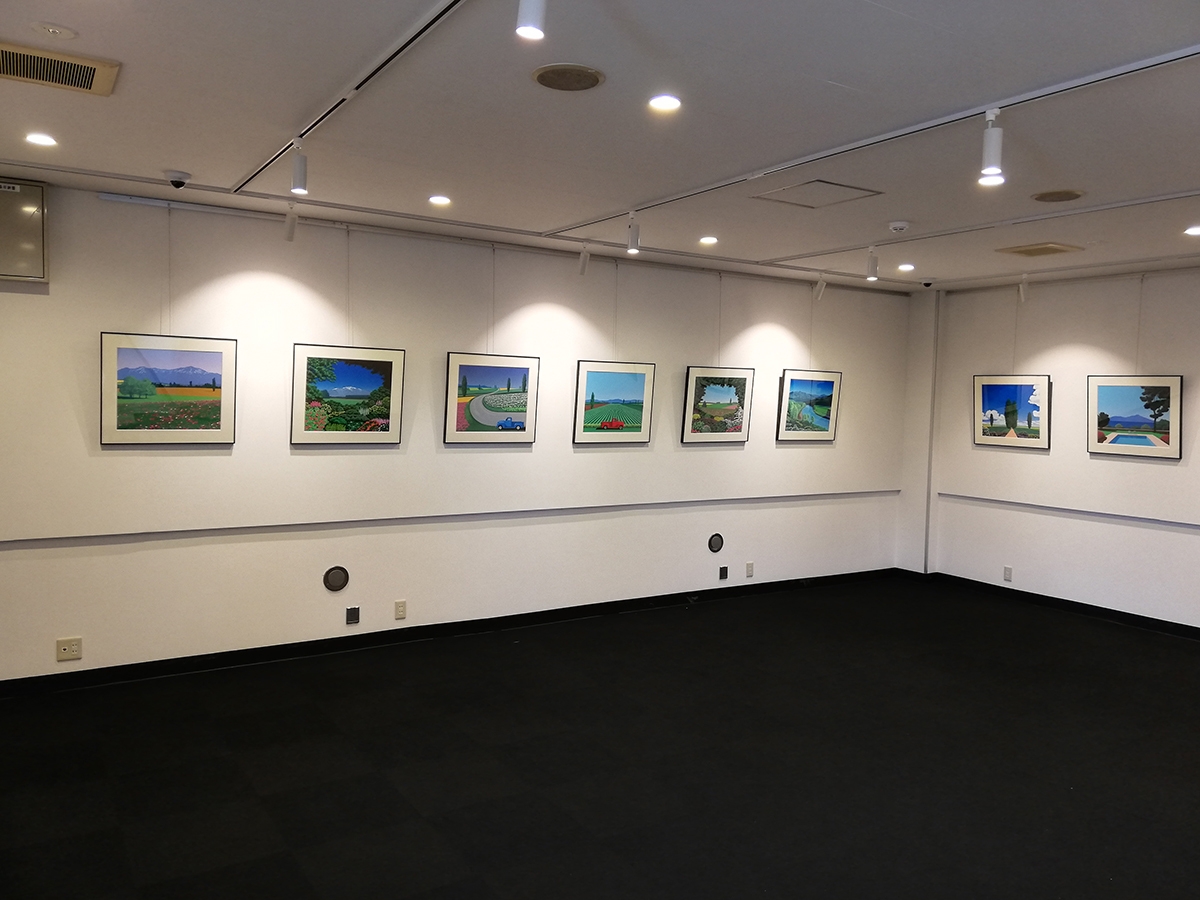2階は展示場スペースを設けています。今回の展覧会は、マテックのホームページやパンフレットで契約を結んでいますイラストレーターの永井博氏の原画を22点展示しています。