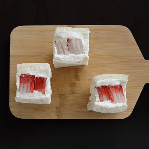 通常のフルーツサンドと異なり、カスタマイズのオーダーをいただいてから、その場で手作りして提供します。新鮮ないちごをみずみずしいままで、冷たいフルーツとクリームを冷たいままで。作り置きを一切しない、その時、その場所だから楽しめる、ライブ感を、心を込めて大切にお作りします。フレッシュ感あふれるフルーツサンドをご賞味いただけます。