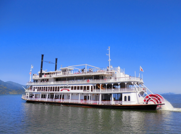 赤いパドルが目印の「外輪船ミシガン」は、びわ湖を代表する大型観光船です。1982年に就航以来、これまでに延べ900万人以上の方にご乗船いただいております。最上階デッキからは、びわ湖南部の美しい景色や比叡山・坂本の街並みをご覧いただけます。また、レストランシップとして軽食から本格的なお料理まで楽しめるだけでなく、音楽ライブや観光案内も楽しむことができるエンターテインメントクルーズ船です。