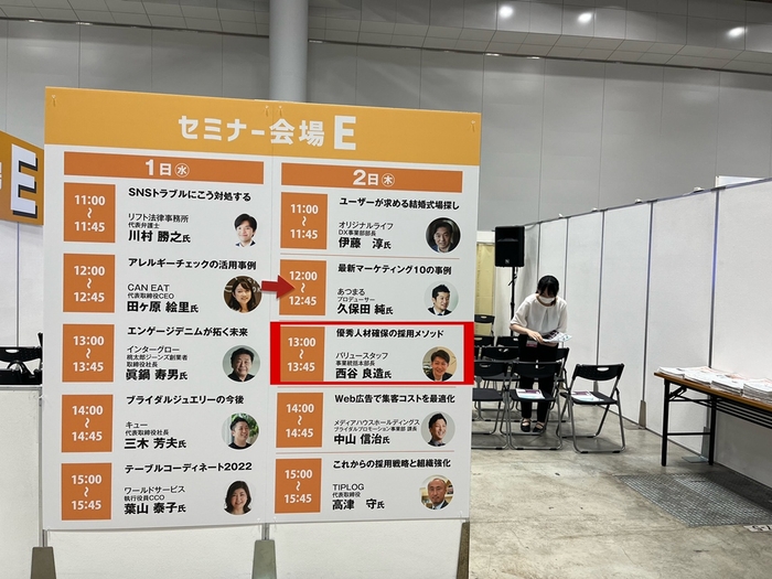 株式会社バリュースタッフは、6/1.6/2に東京ビッグサイトにて開催された「ブライダル産業フェア2022」に出展いたしました。2日間にわたり、採用でお悩みの企業さま向けにリアルタイム商談会を実施し、2日目には事業統括本部長の西谷が出展社セミナーに登壇いたしました。業界に携わる方々の声を直に感じることができる貴重な機会となりました。ブースにお立ち寄り頂いたみなさま、ありがとうございました!