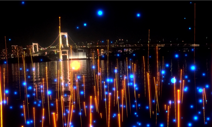 お台場の夜空に映し出される3D映像作品 光と音で奏でるAirMappingShow EDOを初公開