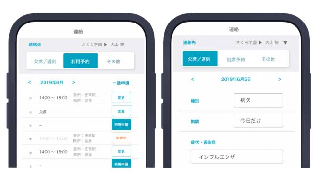 従来の電話や連絡帳ノート経由での登降所時間の予約・申請受付を、専用の保護者アプリを使ってペーパーレス化。