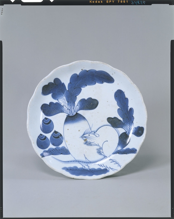 染付大根鼠図大皿 伊万里/江戸時代・19世紀/平野耕輔氏寄贈
