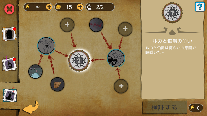 ・独創的なマインドマップで本格の推理ゲームを楽しめる。