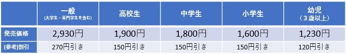 【発売価格】※高校生・中学生の方は、ご入館の際に学生証のご提示が必要です。