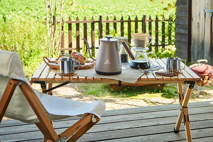様々な場所で使いやすく、細口でコーヒーのドリップにも便利 スイッチひとつで操作が簡単な電気カフェケトルを新発売