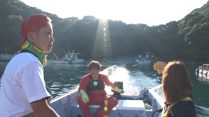 三重県熊野市。山々に囲まれた二木島湾にある小さな港「甫母漁港」で働く田中りみさん、西地絵美さん、松村ありすさんの3人。新型コロナの影響で居酒屋などからの注文が減り、魚が売れなくなったことで昨年導入したのが水中ドローン。大物を見つけ出して釣り上げる作戦ですが、撮影の日に釣れたのは地元の市場では値段がつかない小さな魚だけで、大物は釣れませんでした。
