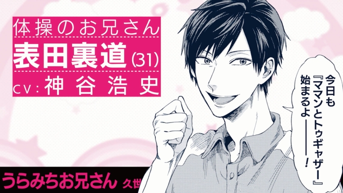 教育番組「ママンとトゥギャザー」の体操のお兄さん・表田裏道(おもた うらみち)31歳。爽やかだけど情緒不安定な“うらみちお兄さん”が垣間見せる大人の闇に、よい子のみんなはドン引き必至…!?