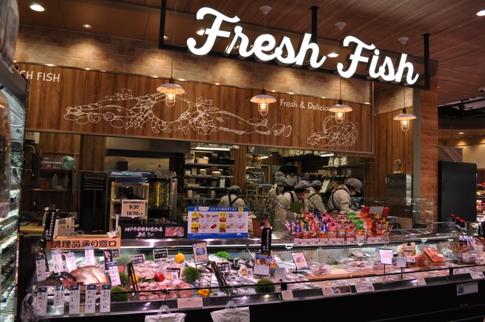 水産売り場にライブ感あふれる対面調理場を導入し、活気ある売り場でお客様をお迎えいたします。また、畜産売り場は商品ケースを増設することで、売り場を1.2倍に拡大いたします。