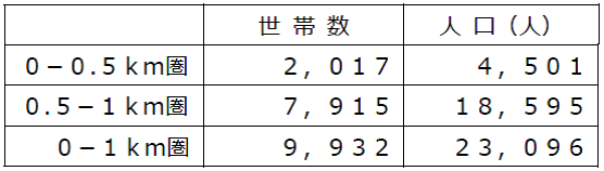 ・店舗から1㎞圏内は、大阪府平均と比較すると60代以上の人口と2人世帯以上が多い地域です。
