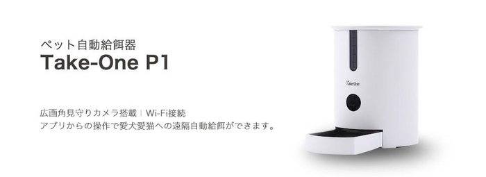 Take-One HomeスマホアプリからWi-Fiを繋げることで、スマホアプリから自動でペットに餌を与え、食べている様子はカメラから確認可能です。搭載されたスピーカーを通して、ご自宅のワンちゃんネコちゃんに呼びかけることもできます。