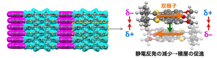 分極を利用した静電反発の克服による荷電π電子系の積層を実現 ~有機半導体の新たな設計指針の確立に期待~
