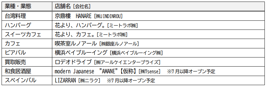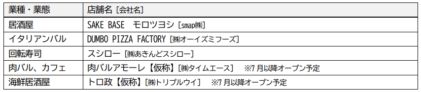 1・2・4階は合計15店舗となる予定ですが、6月20日は飲食店8店舗、買取販売店1店舗、ヘアサロン1店舗がオープンし、残る飲食店5店舗は、7月以降に順次オープンする予定です。