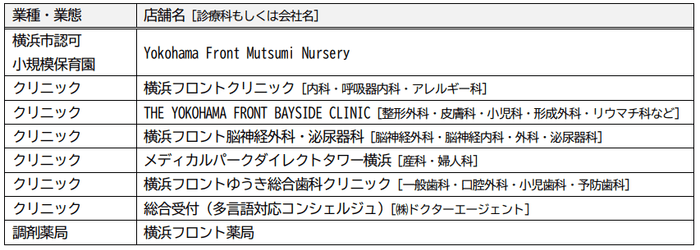 横浜市認可の小規模保育園を設置する他、女性医師が配置された多種多様なクリニックに、調剤薬局や英語・中国語・韓国語を含む多言語対応のコンシェルジュも備えたクリニックモールを設置しました。子育て世代の皆さまへの支援と、患者の皆さま一人一人に最適な医療の提供を総合的に行います。