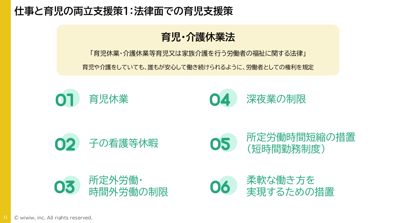 ・仕事と育児の両立支援策1:法律面での育児支援策