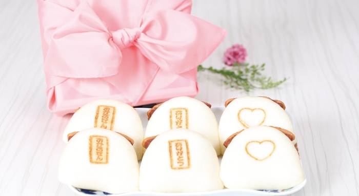 「おかあさん」「ありがとう」「ハート」の3種類で、特別な焼印の角煮まんじゅうをご用意いたしました。