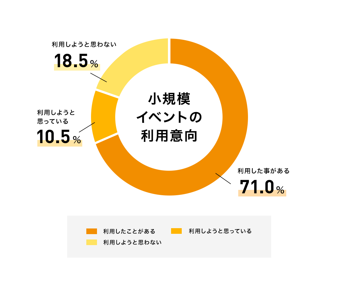 また小規模イベントの利用意向がある学生は、全体の約81%となりました。