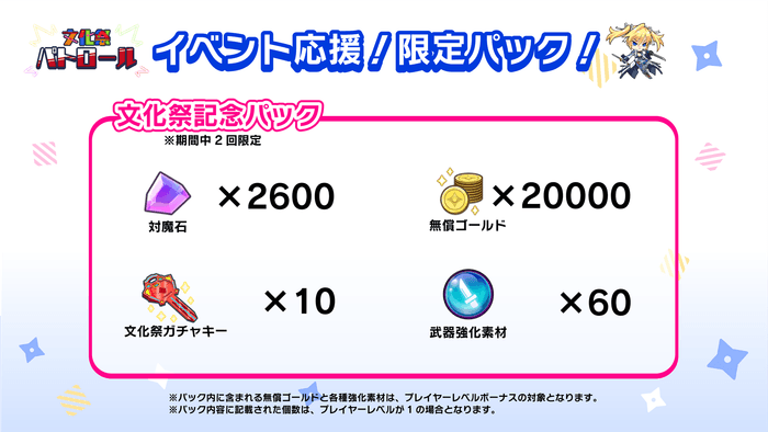 イベント開催中はショップにてお得な期間限定アイテムパックを販売します。