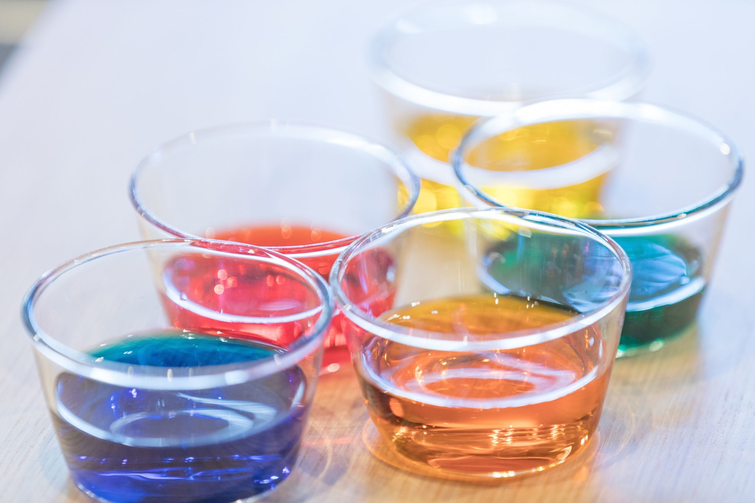 和紙ぞめカラーは、染色時に和紙の質感を損なわないように顔料や布用染料よりも粒子の細かい染料を使い、紙に入り込みやすく特別に調合した和紙専用の染料です。