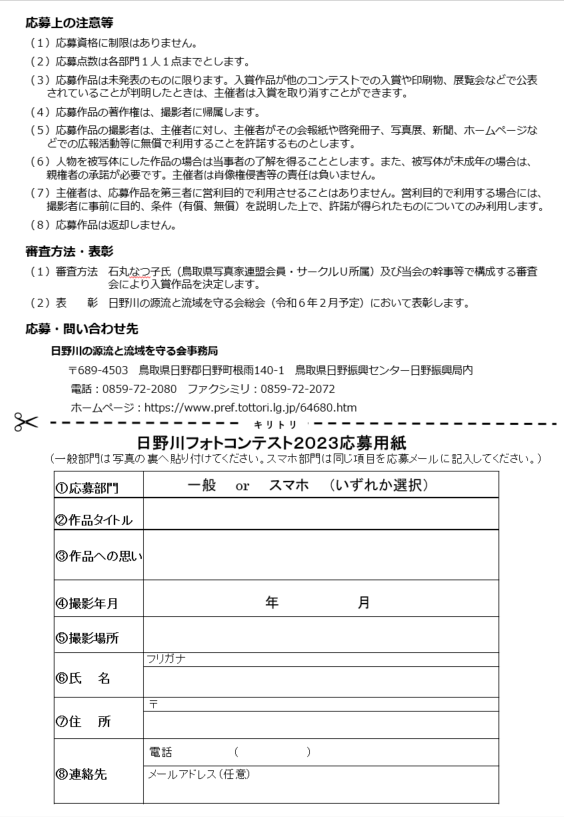 ・応募先 〒689-4503 鳥取県日野郡日野町根雨140-1