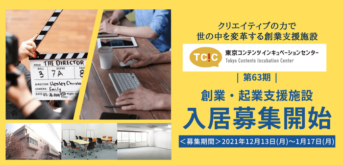 株式会社ツクリエ(本社:東京都千代田区 代表取締役:鈴木英樹)は、東京都より運営受託をする東京コンテンツインキュベーションセンター(以下、TCIC)の第63期の入居募集を開始しました。