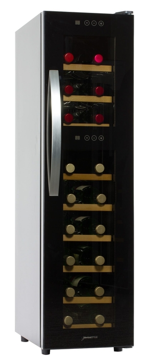 両モデルともに日本メーカー製の高信頼性ペルチェ素子を使用した冷却ユニットを2基搭載した18本用のワインセラーで、最大22本の収納が可能になっています。※ボルドータイプの場合。