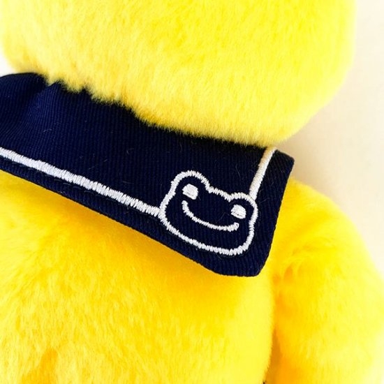 襟の後ろにはカエルマークの刺繍が!お腹にもゴールドの刺繍が施されていて、かなり凝っています。大人同士のプレゼントにも使える高級感あるぬいぐるみ♪