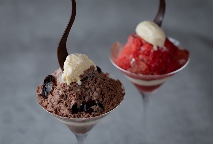 当店では、チョコレートを通じた新たな食体験をお届けすることをテーマに、カフェスペースでは、旬素材と掛け合わせたメニューを展開しております。この度、夏本番へ向けて、カフェメニューかき氷を2種、テイクアウトかき氷を1種、それぞれ発売いたします。