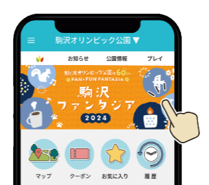 ※駒沢オリンピック公園管理所にて、「アプリdeポイントラリー」の駒沢ファンタジア画面をご提示ください。