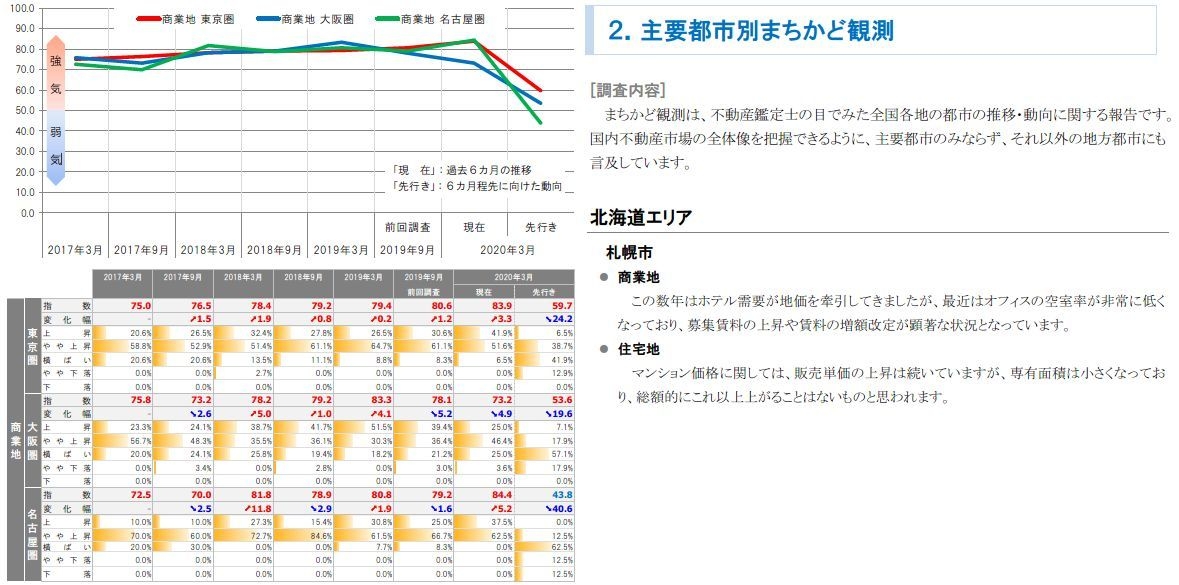 また今回は全国各地の都市について、不動産鑑定士の目でみた不動産市場の動向に関する定性的な報告をまとめた「主要都市別まちかど観測」も掲載。国内不動産市場の全体像を把握できるように、主要都市のみならず、地方都市についても言及しております。