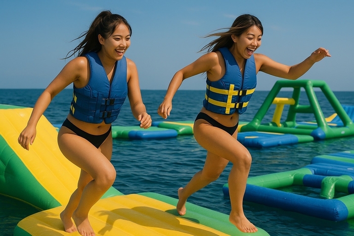 和歌山市片男波海水浴場初の海上アスレチック 「AQua LooP(アクアループ)」が7月5日(土)にOPEN!