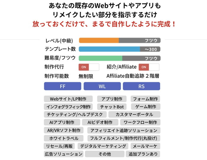 CMS世界最高峰「Bubble」をはじめ、世界中の人気ノーコードツールを1,000種類以上から厳選して、自由に選んで制作・運用・転売が可能!タイトルをリクエストして無料で追加利用も可!