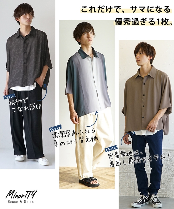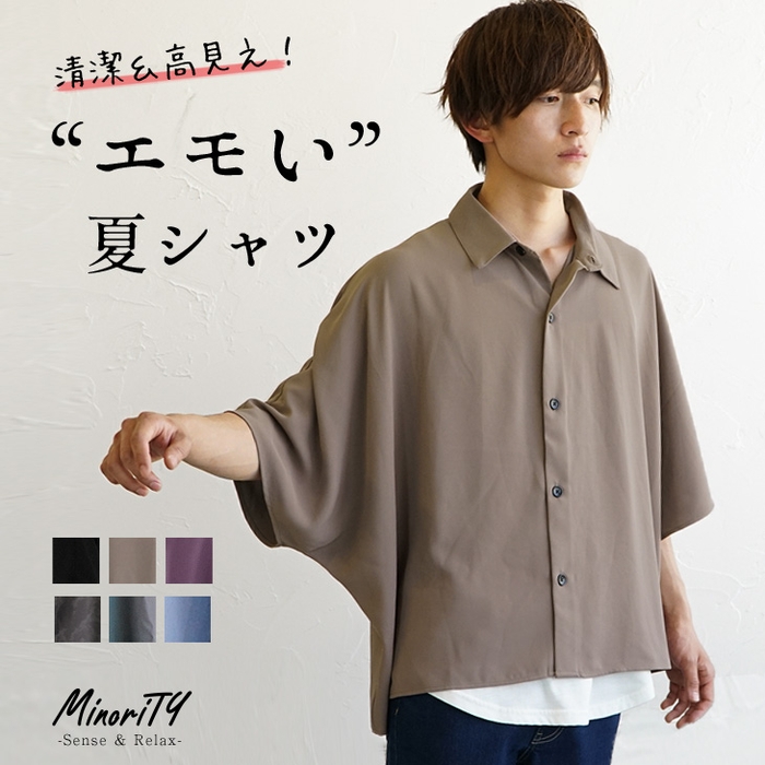 サッと着れるのに大人っぽい半袖シャツをゆったり感抜群のドルマンシルエットで仕上げた理想の夏トップスです♪