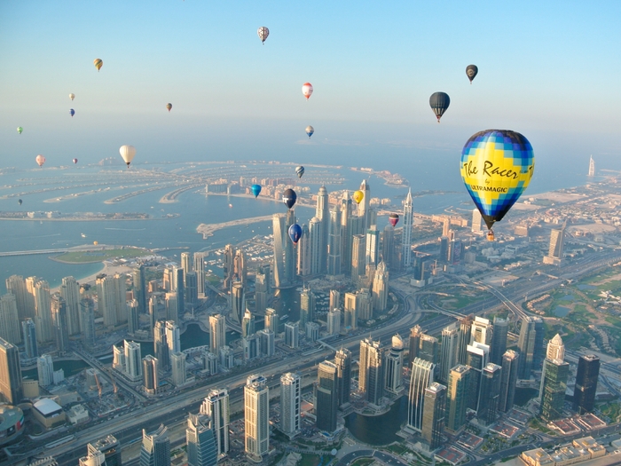 そして、上空から見る景色は特別。僕は雲海を見るのが好きですね。晴天の中、広々と海のようにひろがって見える幻想的な景色は絶景です。バスケットから身を乗り出せる状態で、そんな上空まで行けちゃうんです。日本では高度1000〜1200mと定められていますが、世界選手権では高度3000mくらい上空を飛びます。僕は過去最高5000mくらいまで経験しました。その時は、スイスから飛び立って、アルプス山脈を超えて、イタリアまでいくというフライトだったのですが、終始言葉では言い表せないほどの絶景でした。世界中どこも綺麗でしたが、一番興奮したのはドバイで開催された空のオリンピック「World Air Games(ワールドエアーゲーム)」に出場した時。あの超高層ビルの連なる幻惑的な都市部を低空で飛んで、パーム・アイランドがある美しいペルシア湾に出て、広大な砂漠地帯に降りていくというフライト。近未来とアラビアンな世界が入り混じった非現実的な景色。それは、ドバイでしか味わえない感動的なものでした。