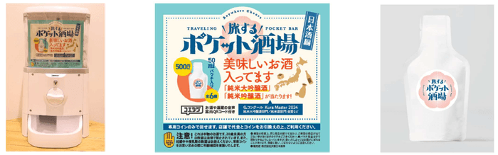 『旅するポケット酒場』は、パウチに詰められた50mlの日本酒をカプセル内に封入し、専用コインを用いて購入・体験する新感覚のサービスです。SAKE DIPLOMA資格を有するスタッフが選定した日本各地の酒蔵の銘柄がラインナップされており、回すたびに 日本酒との“偶然の出会い”が楽しめます。