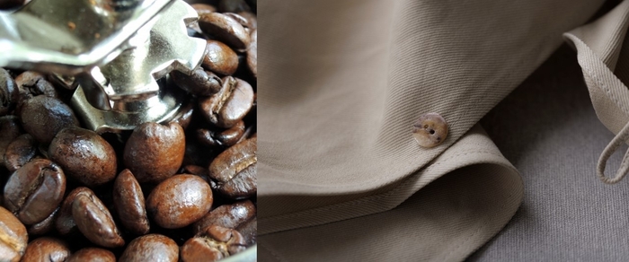 色ムラや耐光性などの観点から避けられてきたカーテンの天然染めに挑戦。珈琲とアロニアの残りかすを使い、長い年月をかけて、当社の厳しい品質基準を満たす商品化を実現しました。