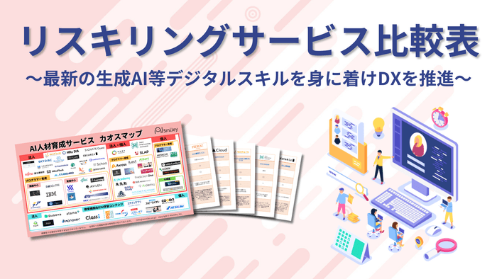 国内最大級のAIポータルメディア「AIsmiley」を運営するアイスマイリーは、最新の生成AI等を含むリスキリング関連のサービスをまとめた「リスキリングサービス比較表」を2023年9月14日に公開しました。